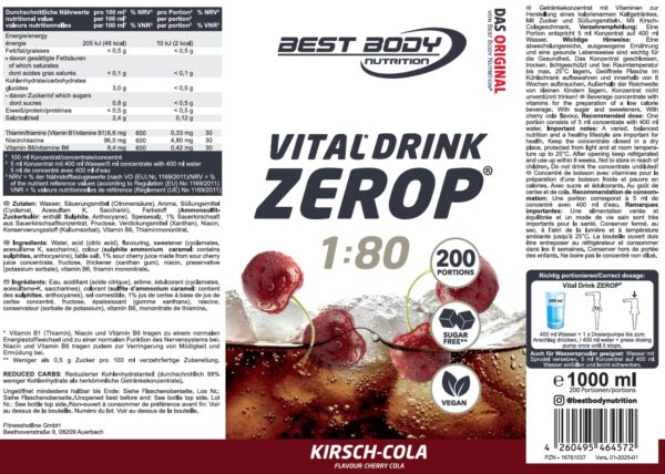 Best Body Nutrition Vital Drink Getränkekonzentrat 1:80 Kirsch Cola 1000 ml Sirup mit Fruchtsaft2 durchschnittlich nur 2,5 kcal pro Portion3…