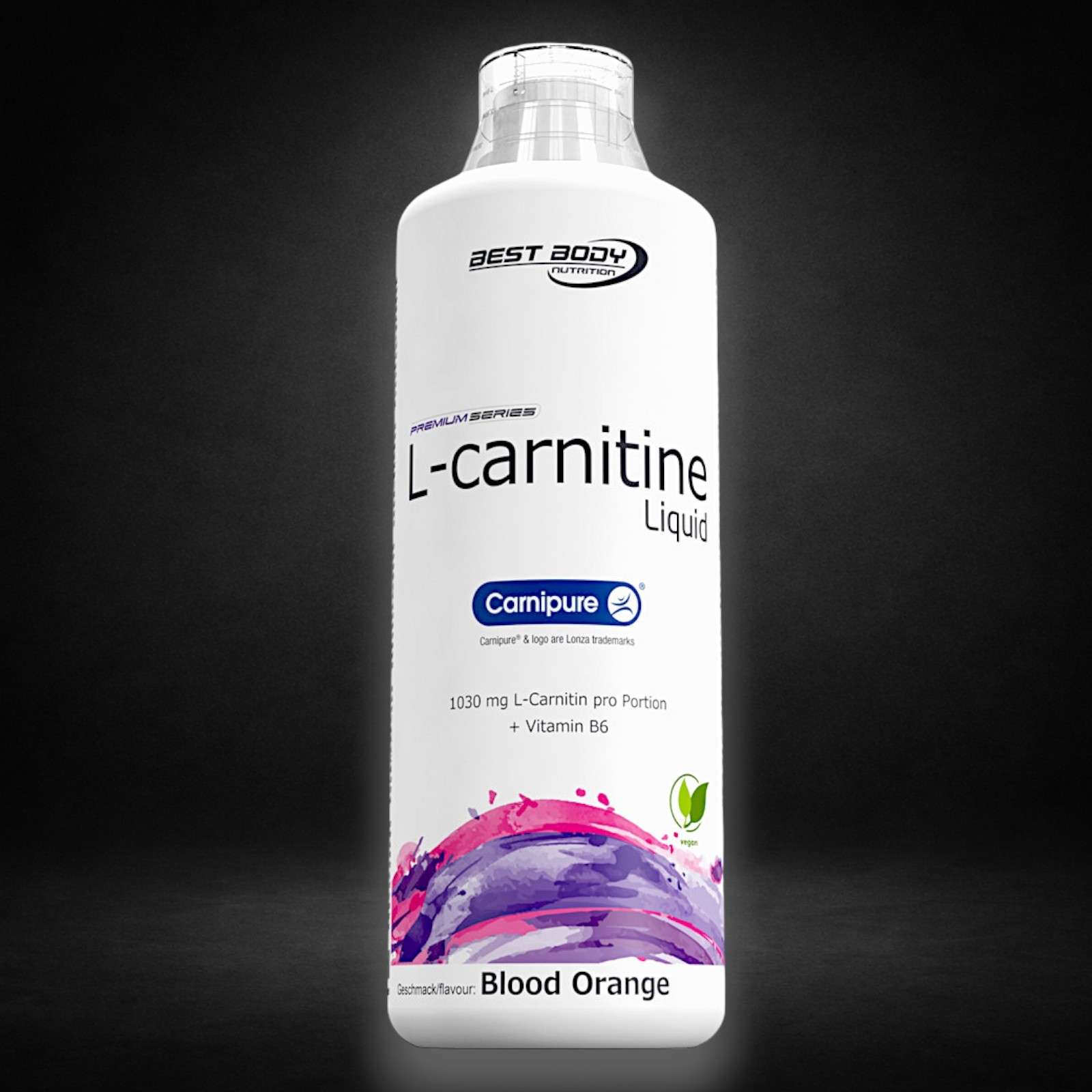 Best Body Nutrition L-Carnitin Liquid, Nahrungsergänzungsmittel mit L-Carnitin und Vitamin B6. Mit Zucker und Süßungsmitteln. Mit Blutorangengeschmack.