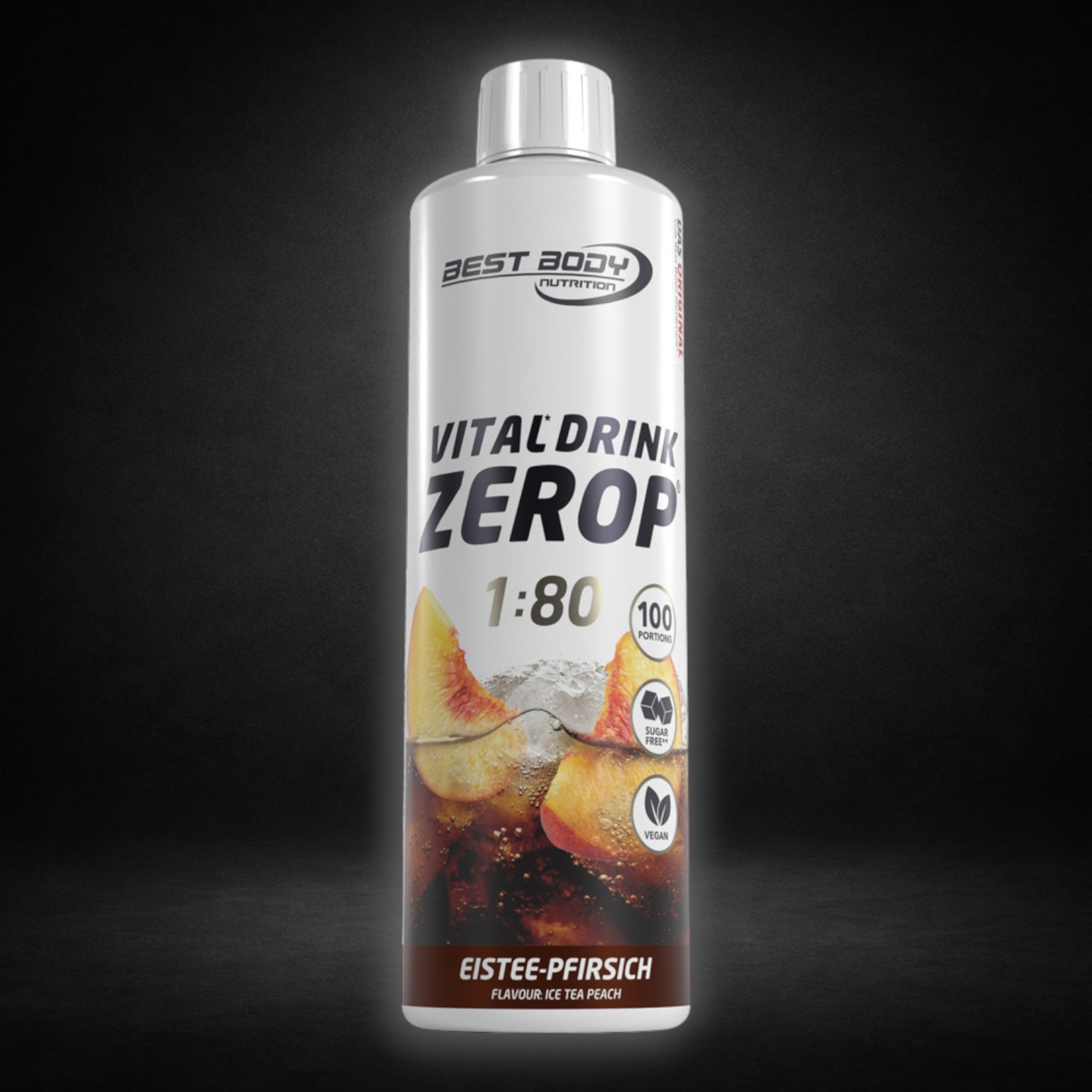 Best Body Nutrition Vital1 Drink ZEROP®, Getränkekonzentrat mit Vitaminen zur Herstellung eines kalorienarmen Kaltgetränkes. Mit Zucker und Süßungsmitteln. Mit Eistee-Pfirsichgeschmack.