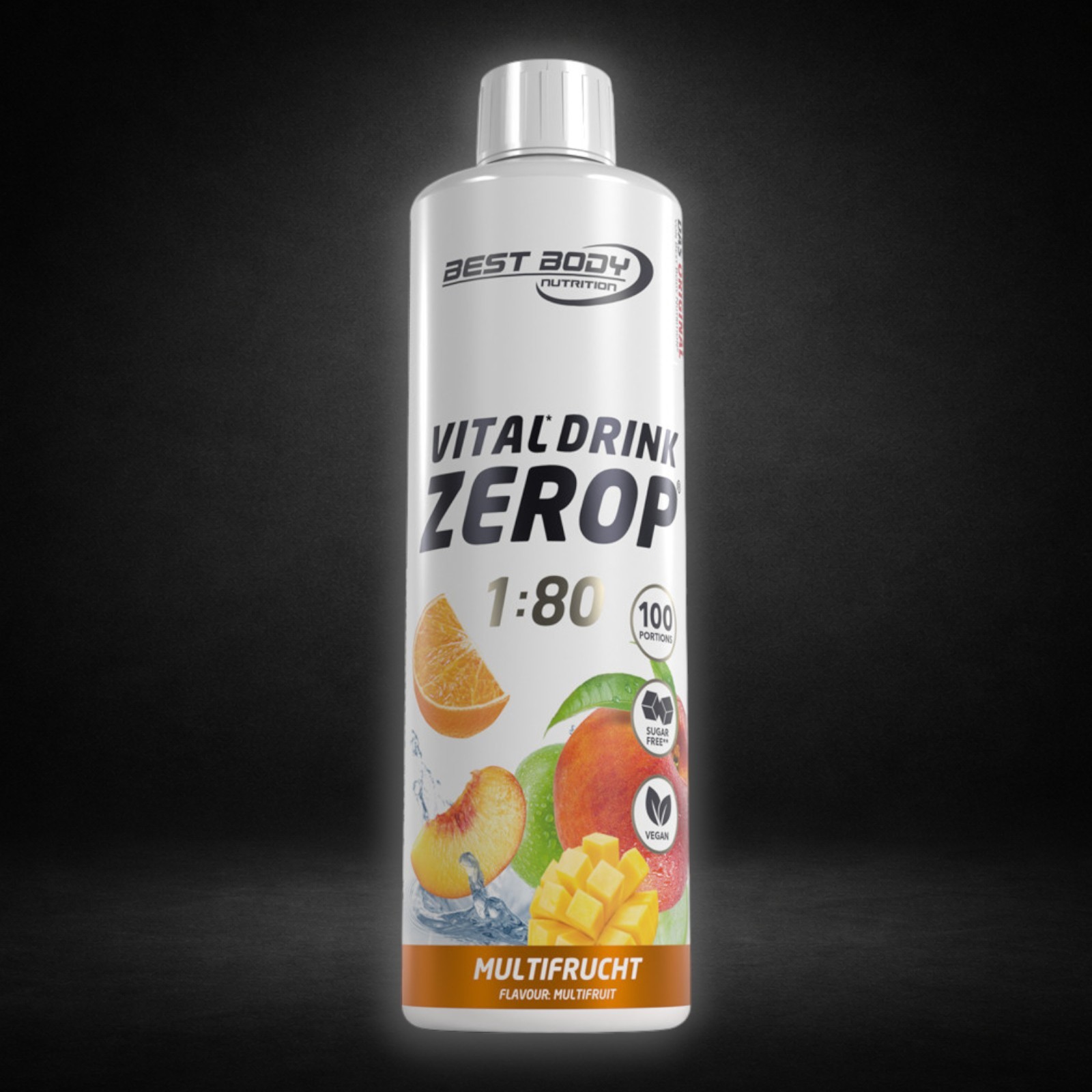 Best Body Nutrition Vital1 Drink ZEROP®, Getränkekonzentrat mit Vitaminen zur Herstellung eines kalorienarmen Kaltgetränkes. Mit Zucker und Süßungsmitteln. Mit Multifruchtgeschmack.