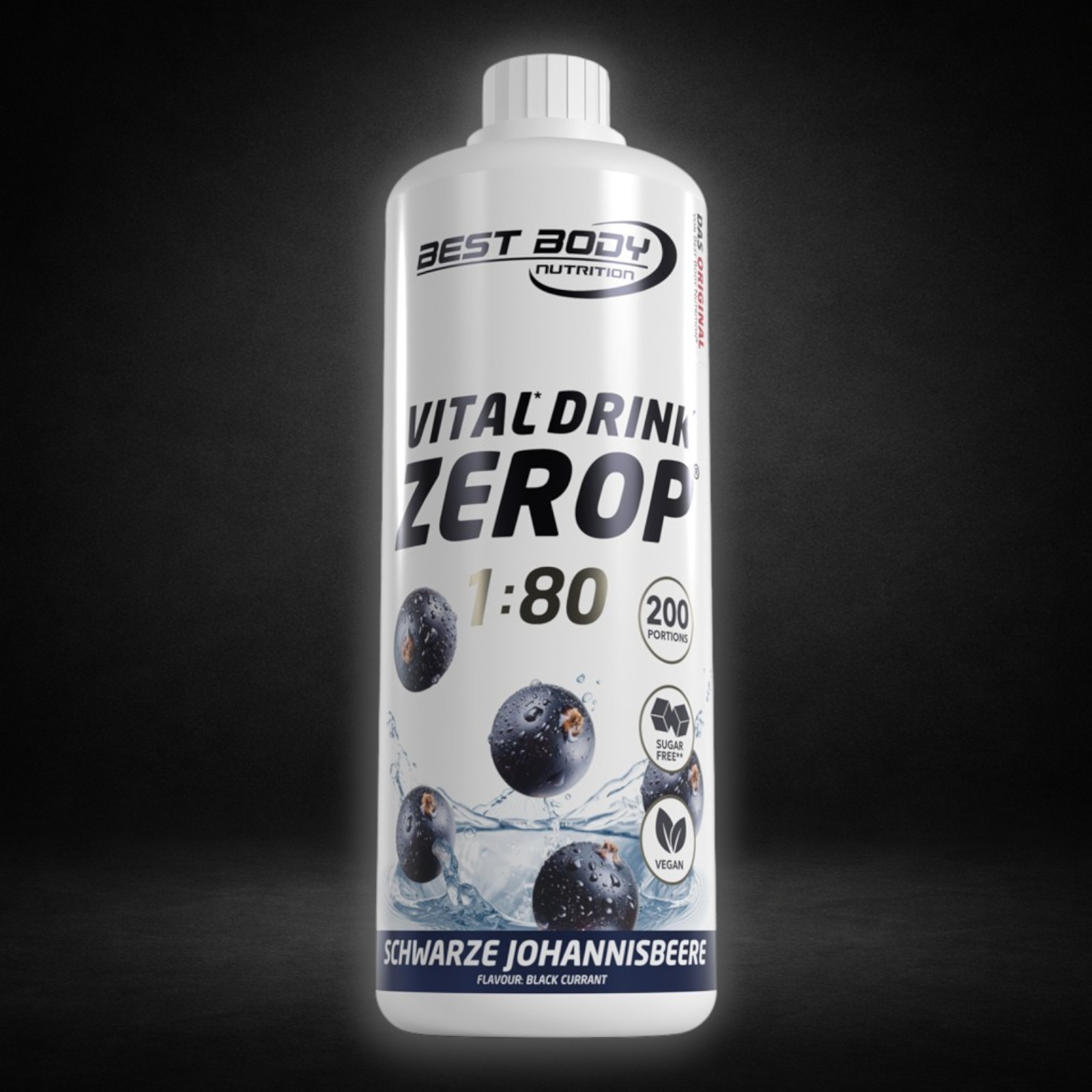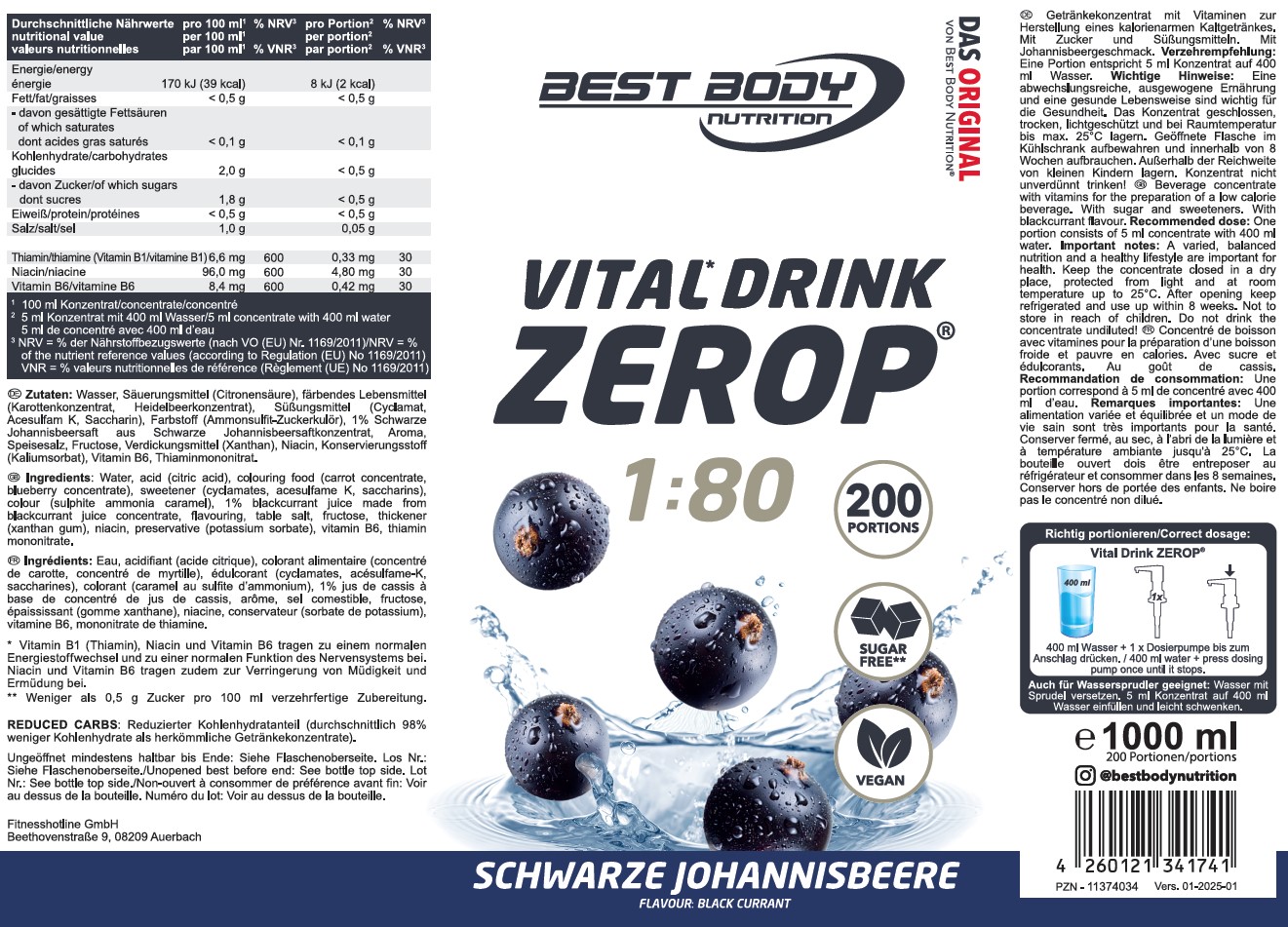 Best Body Nutrition Vital1 Drink ZEROP®, Getränkekonzentrat mit Vitaminen zur Herstellung eines kalorienarmen Kaltgetränkes. Mit Zucker und Süßungsmitteln. Mit schwarze Johannisbeergeschmack.