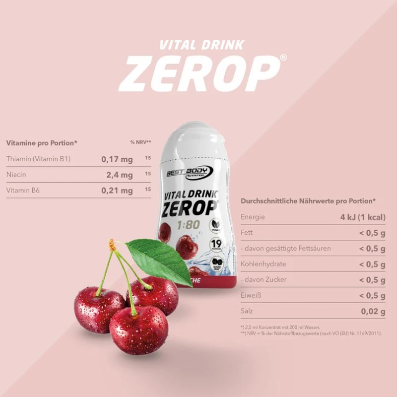 Best Body Nutrition Getränkekonzentrat mit Vitaminen zur Herstellung eines kalorienarmen Kaltgetränkes. Mit Zucker und Süßungsmitteln. Mit Kirschgeschmack.