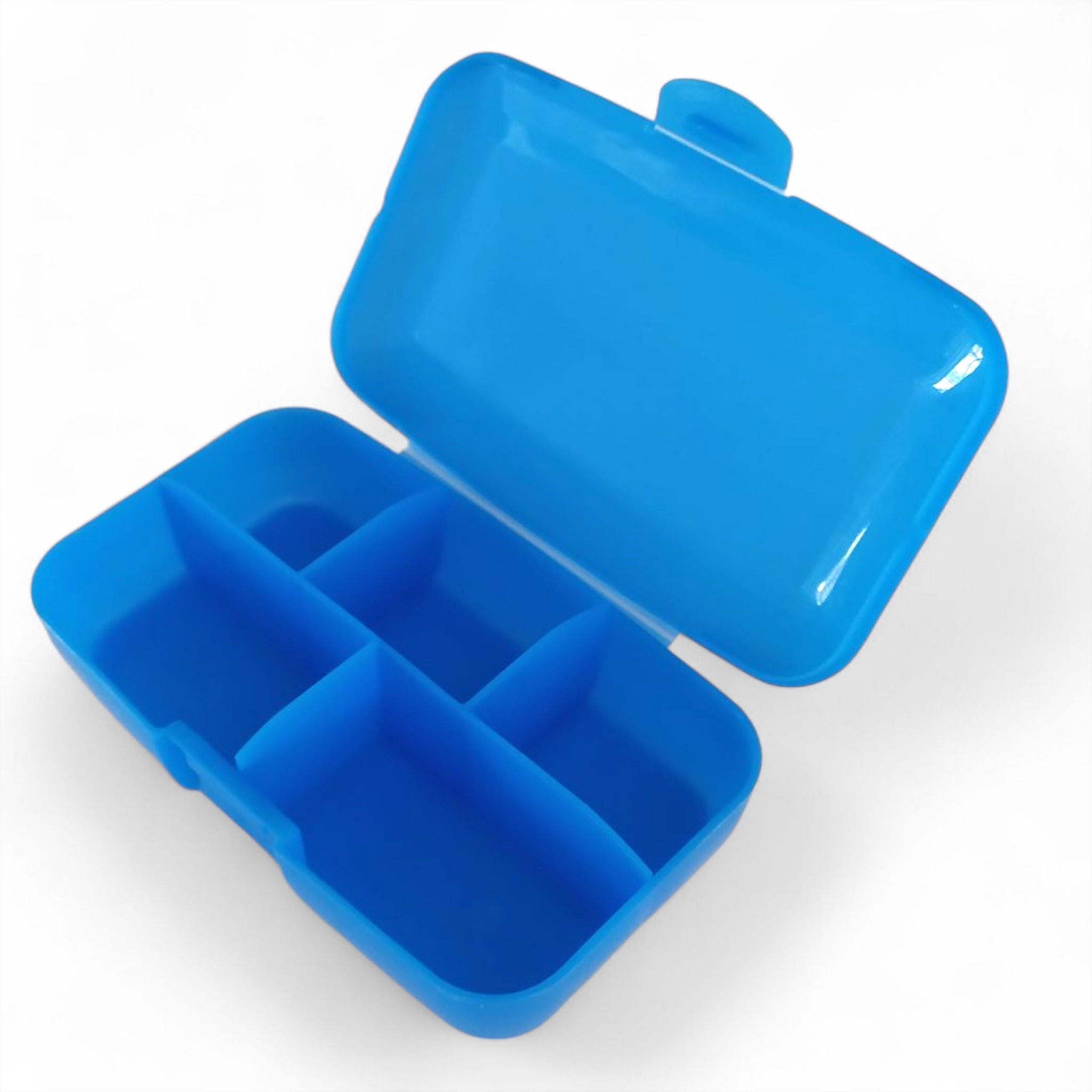 Kompakte Pillenbox mit 5 Fächern – ideal für Supplements, Vitamine oder Medikamente.