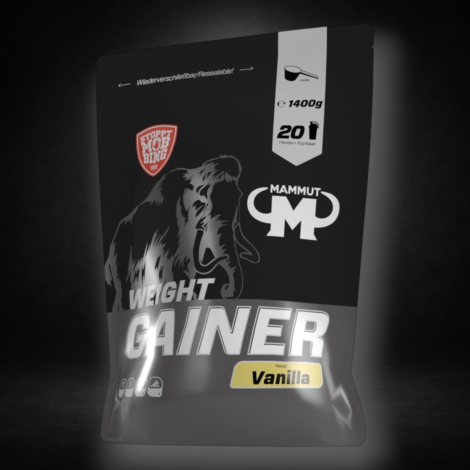 Vor allem „Hardgainer“, also Sportler die von Natur aus schlecht zunehmen können, sollten zu diesem Kohlenhydrat-Megabooster greifen. Denn um an Gewicht bzw. Masse zu zulegen, muss eine positive Energiebilanz erreicht werden, das heißt dem Körper muss täglich mehr Energie zugeführt werden als er verbraucht. 83 g Kohlenhydrat und 13 g Protein pro 100 g sorgen dafür endlich ein paar Pfunde zuzulegen.