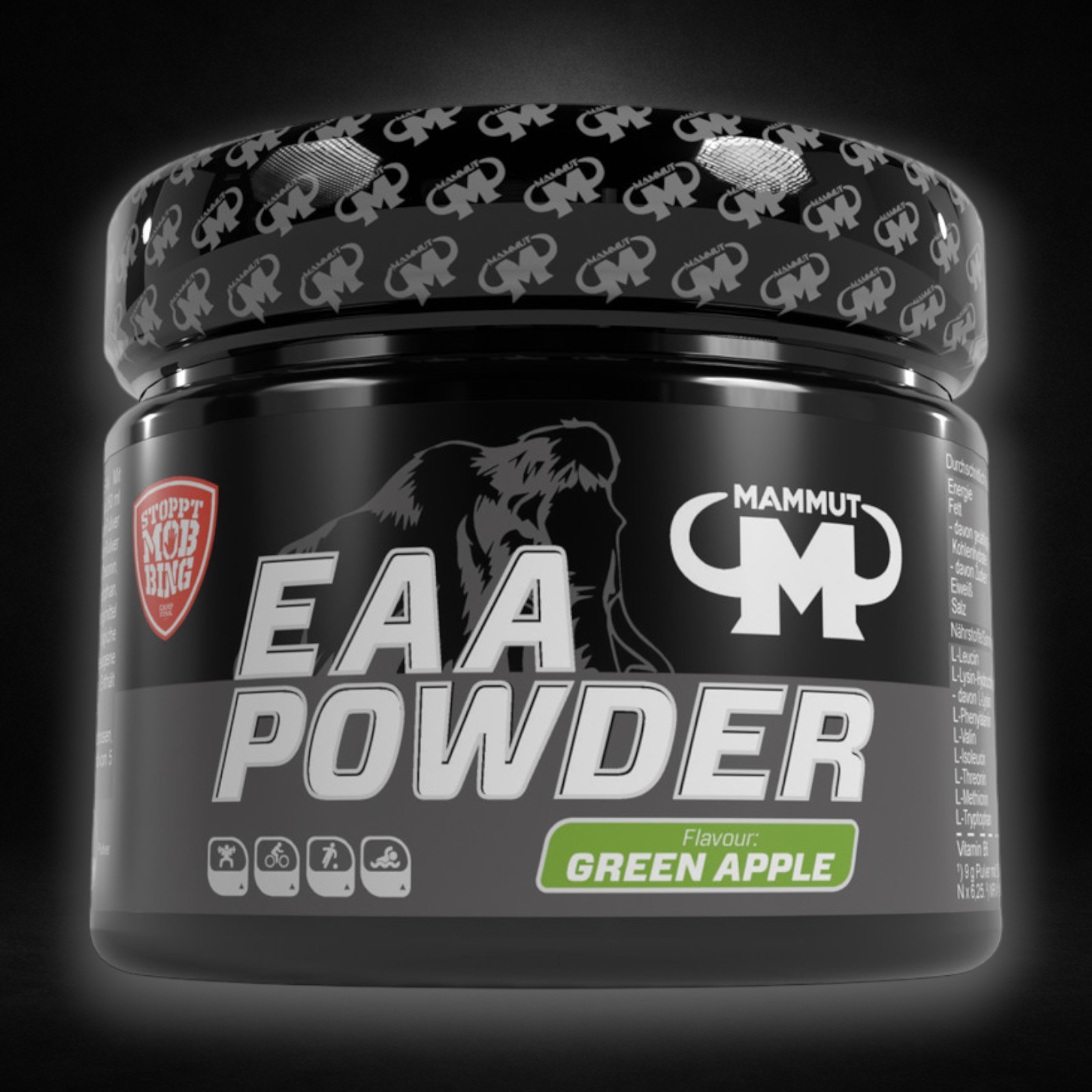 Mammut EAA Powder, Nahrungsergänzungsmittel mit 70 % essentiellen Aminosäuren (EAA). Mit Süßungsmitteln. Mit Apfelgeschmack.