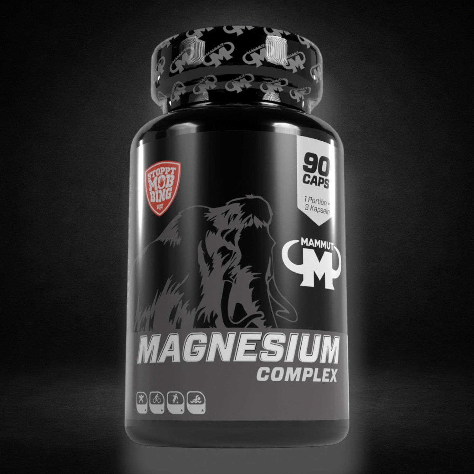 Der Magnesium Complex von Mammut Nutrition ist eine hochwertige Nahrungsergänzung, die speziell dafür entwickelt wurde, um den Körper mit einer optimalen Menge an Magnesium über den Tag zu versorgen. Hierbei wurden vier verschiedene Magnesiumquellen ausgewählt – Magnesiummalat, Trimagnesiumdicitrat, Magnesiumascorbat und Magnesiumchlorid, welche sich hinsichtlich der Bioverfügbarkeit so unterscheiden, dass sowohl schnell als auch langfristig dem Körper Magnesium zur Verfügung steht. Eine Portion von 3 Kapseln deckt den kompletten Tagesbedarf von 375 mg Magnesium.