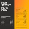 Fructose, Dextrose, 8% Creatinmonohydrat, 5% L-Glutamin, Magnesiumcitrat, 3% L-Arginin, 3% Beta-Alanin, Maltodextrin, Säuerungsmittel (Citronensäure), Orangenfruchtpulver, Aroma (enthät Laktose) 2% Taurin, Molkenproteinkonzentrat, Speisesalz, Trennmittel (Siliciumdioxid), Maracujafruchtpulver, Kaliumcitrat, Verdickungsmittel (Gummi arabicum), L-Leucin, Vitamin C, L-Valin, L-Isoleucin, Vitamin E, Zinkoxid, Niacin, Panthonensäure, Vitamin B6, Farbstoff (Beta Carotin), Vitamin B2, Vitamin B1, Chrom-(III)-chlorid, Folsäure, Biotin, Vitamin B12.